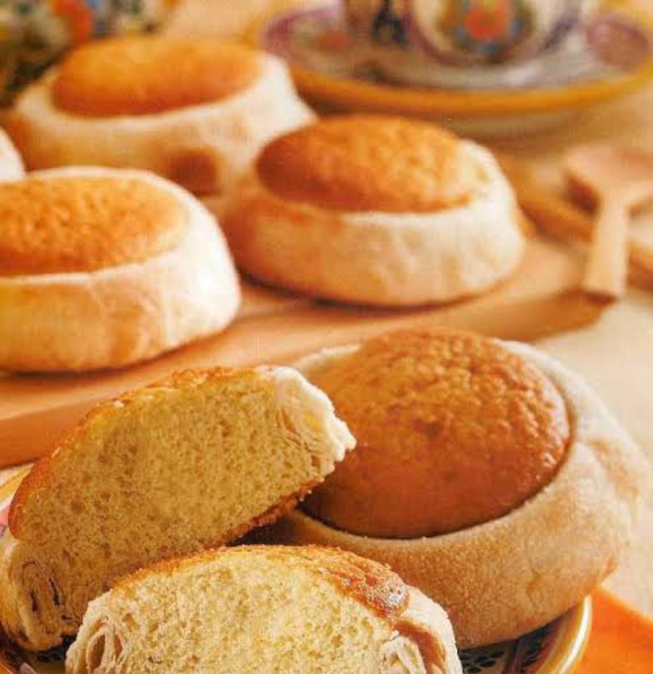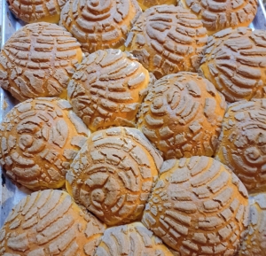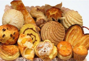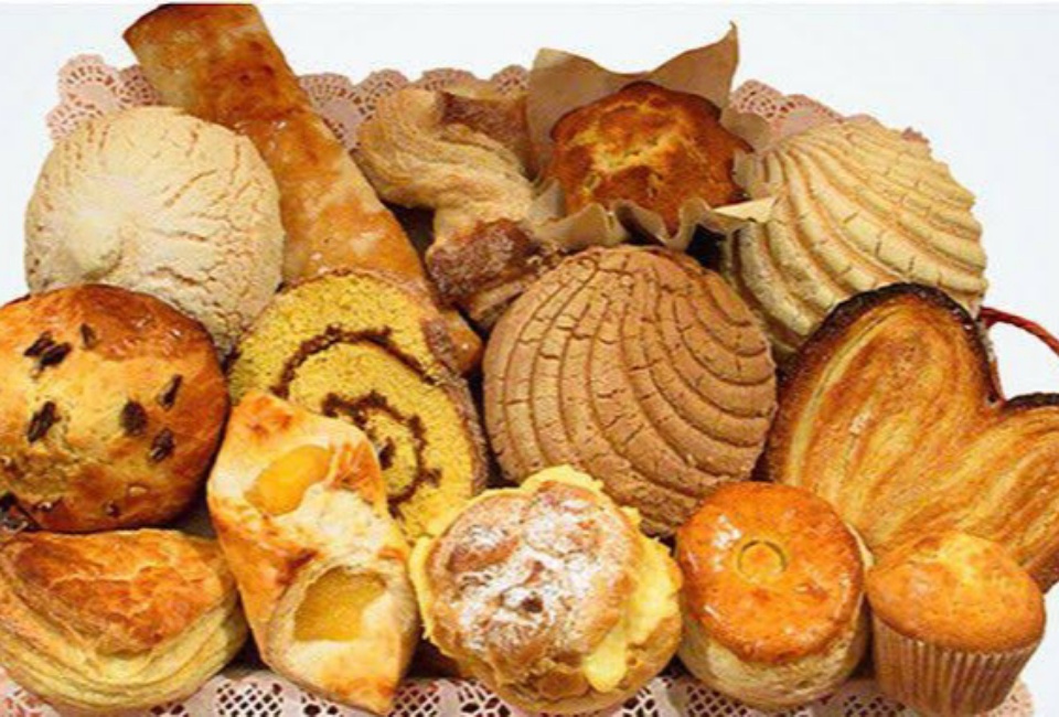 Pan, bolillo, conchas, telera, donas, orejas, moño, panqué, galletas, trenzas, bisquets, ojo de Pancha, palomas, polvorón, cocol, campechanas...