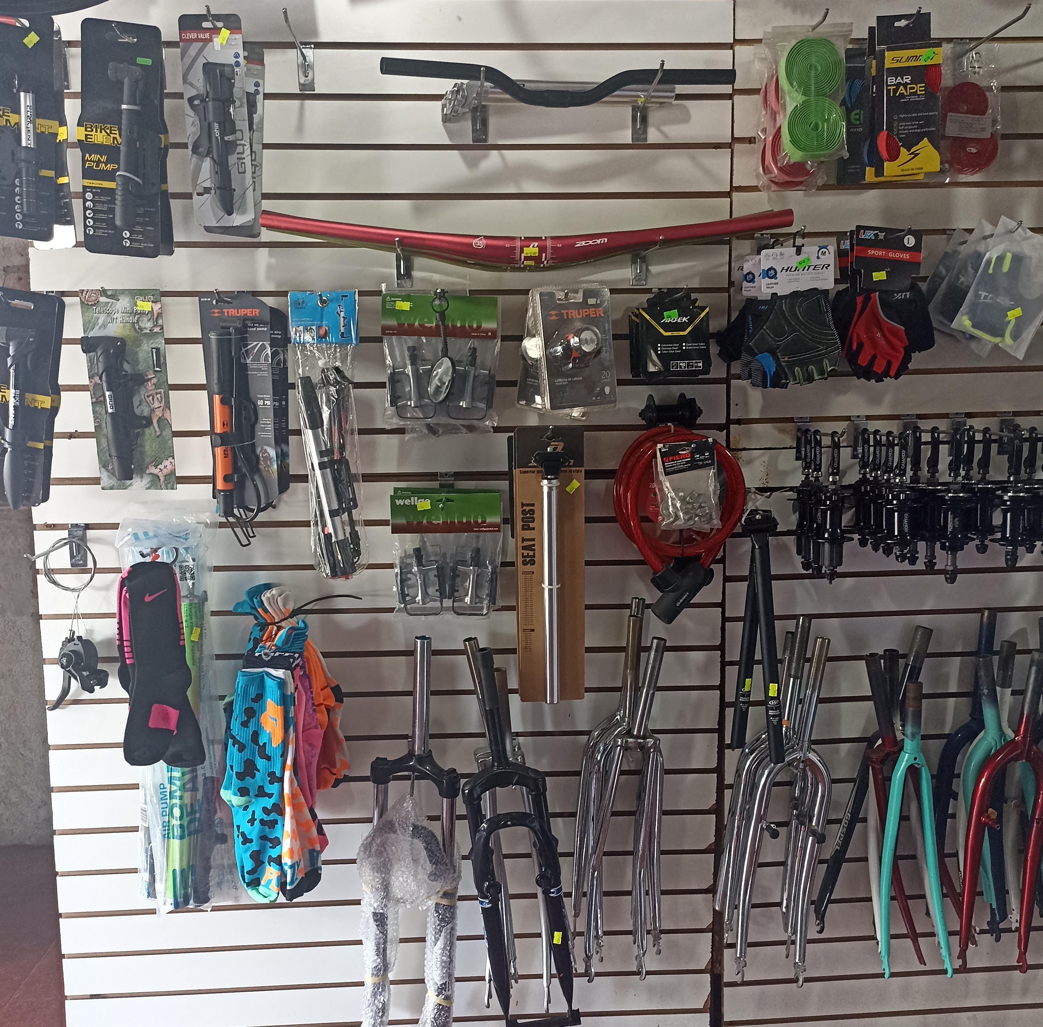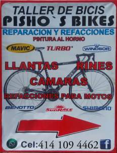 Venta de Refacciones de todas las marcas y para todo tipo de bicicletas: (llantas camaras, rines, aros, frenos, cuadros, potencias, asientos, cadenas, pedales, manubrios, cintas, rayos) etc. etc.