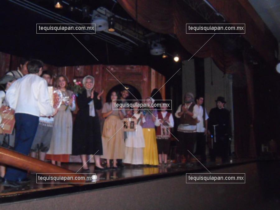 Pani recibe su reconocimiento por la obra de teatro El Violinista sobre el Tejado.